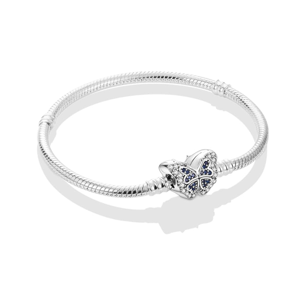 Sterling silver 925 bracelet with a sparkling butterfly charm adorned with blue crystals. A symbol of transformation, freedom, and elegance.
